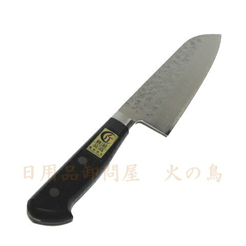 越前数馬作 ステンV10鋼 三徳包丁 鎚目打 口金付 170mm 【特長】 鋭い切味を長期間保持でき、しかも錆にも強いV10鋼を使用した三徳包丁です。