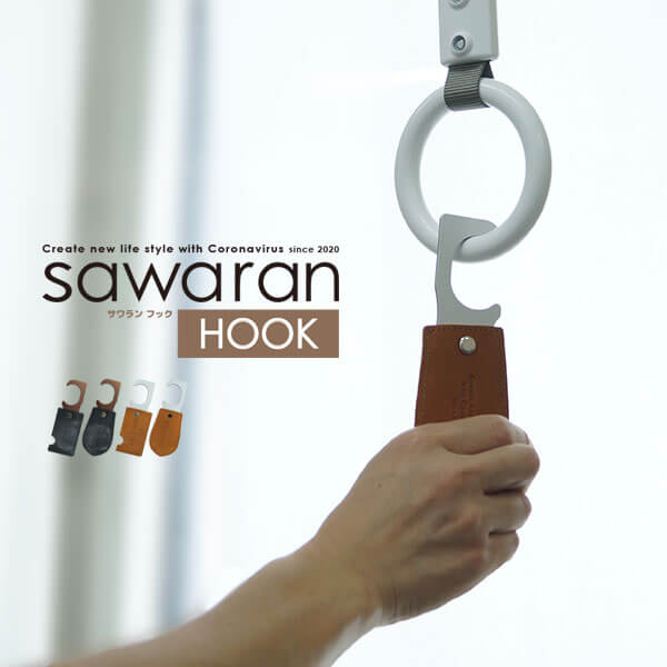 商品詳細 SAWARANフックは、革×ジュラルミン製のフックで金属部分を電車のつり革などに引っ掛けて、直接手を触れずに掴まることができる感染防止グッズです。