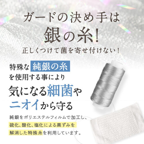 | ポイント | 何度でも洗って使える、シルク100%のやわらかマスクシートです。特殊な純銀の糸を使用することにより、気になる細菌やニオイから守ります。複数回の洗濯後でも、効果が持続する銀イオン効果!菌・防臭効果が半永久的に持続します。 |